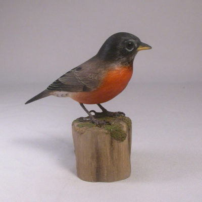 This is an original, fully detailed and life sized carving. The bird is entirely hand carved from basswood and painted with acrylic colors. It is mounted on a hand carved wooden base. This magnificent, fully-detailed carving measures 8 inches from the … Continued