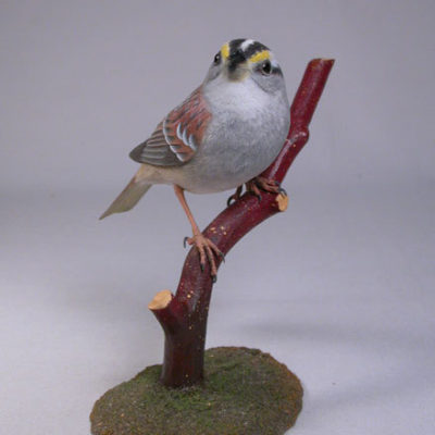 This is an original, fully detailed and life sized carving. The bird is hand carved from basswood and painted with acrylic colors. It is mounted on a hand carved wooden base. Glass eyes and metal feet. The size of the … Continued