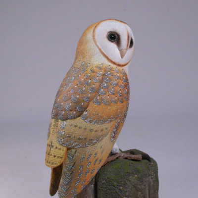 This is an original, fully detailed carving. The bird is entirely hand carved from basswood and painted with acrylic colors. It is mounted on a hand carved wooden wheel. This magnificent, fully-detailed carving measure 10 inches from the top of head to tail, and stands 15 inches tall. Glass eyes and the feet are hand made from 2-part product combines of sculpting clay.