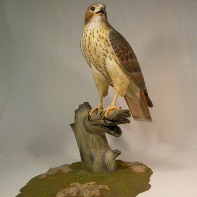 This is an original, fully detailed and life sized carving. The bird is hand carved from basswood and painted with acrylic colors. It is mounted on a hand carved wooden base. Glass eyes and the feet are hand made from … Continued