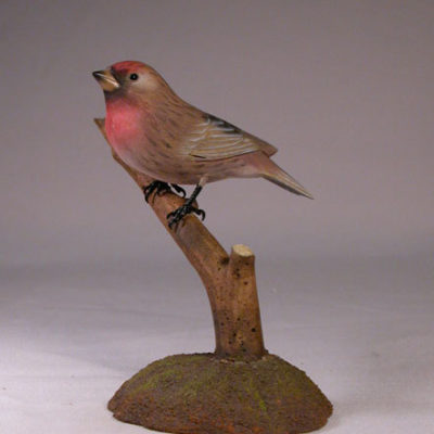 This is an original, fully detailed and life sized carving. The bird is hand carved from basswood and painted with acrylic colors. It is mounted on a hand carved wooden base. Glass eyes and metal feet. The size of the carving measures 5-1/2″ high and 4-1/2″ long from the beak to the tail.
