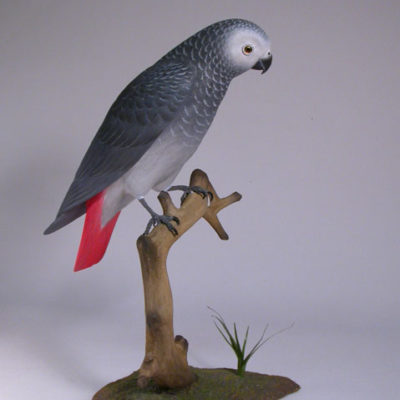This is an original, fully detailed carving. From the side of the head to the end of the tail is 5-1/8 inches long. The total carving is 5-3/4 inches high including the base. Hand carved and hand painted base. The bird is hand carved out of basswood and painted with acrylic colors. Glass eyes and metal feet.