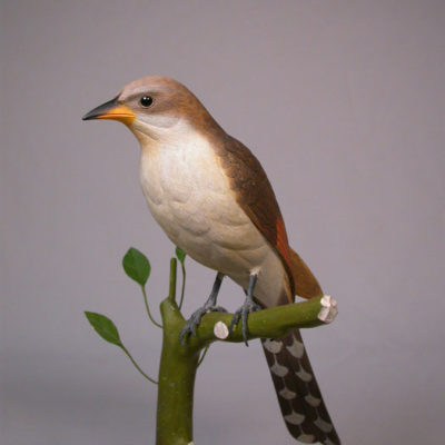 This is an original, fully detailed and life sized carving. The bird is hand carved from basswood and painted with acrylic colors. It is mounted on a hand carved wooden base. Glass eyes and metal feet. The size of the carving measures 4-3/8″ high and 4-1/2″ long from the beak to the tail.
