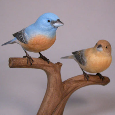 This is an original, fully detailed carving. It measures 6-1/4 inches from the beak to the end of the tail. The total carving is about 5-3/4 inches high including the base. The bird is hand carved from basswood and painted with acrylic colors with hand carved wooden base. Glass eyes and metal feet.